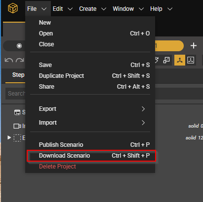 Click on the File Menu and “Download Scenario" to download the scenario file (.scope file.)