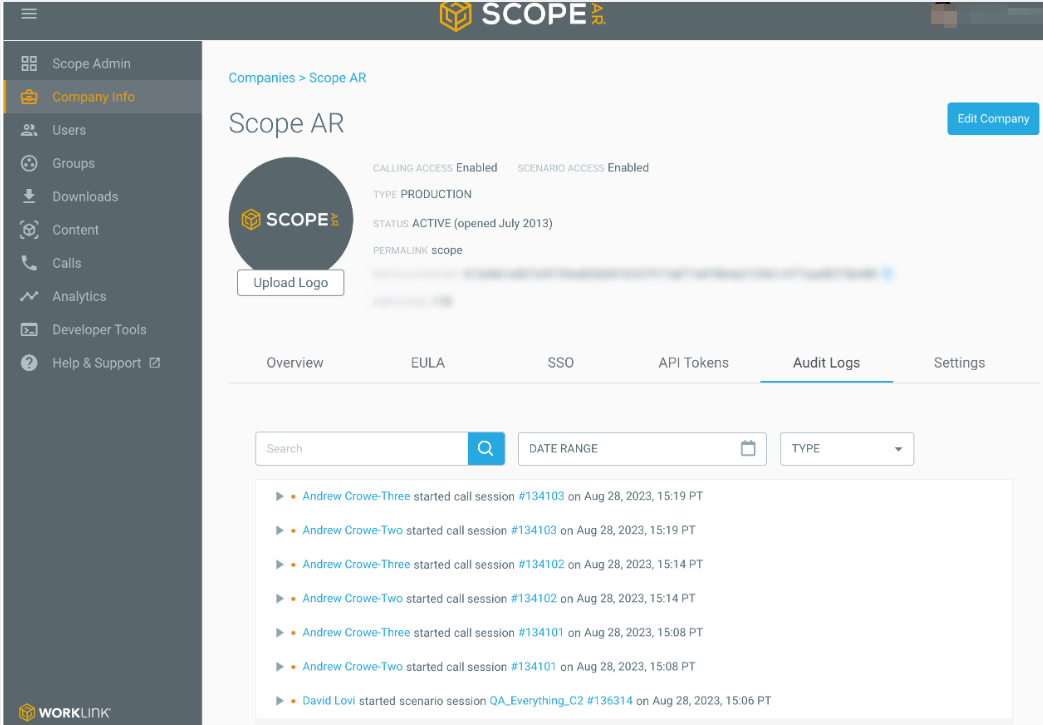 Audit Logs enable administrators to review activity and changes made across the platform. This includes actions such as creating groups or deleting sessions, as well as user activities like logging in, starting calls, and loading scenarios, etc. Audit Logs provide clear visibility into what was changed, who made the change, and when it occurred, making them essential for troubleshooting, security monitoring, and identifying potential data misuse or vulnerabilities.